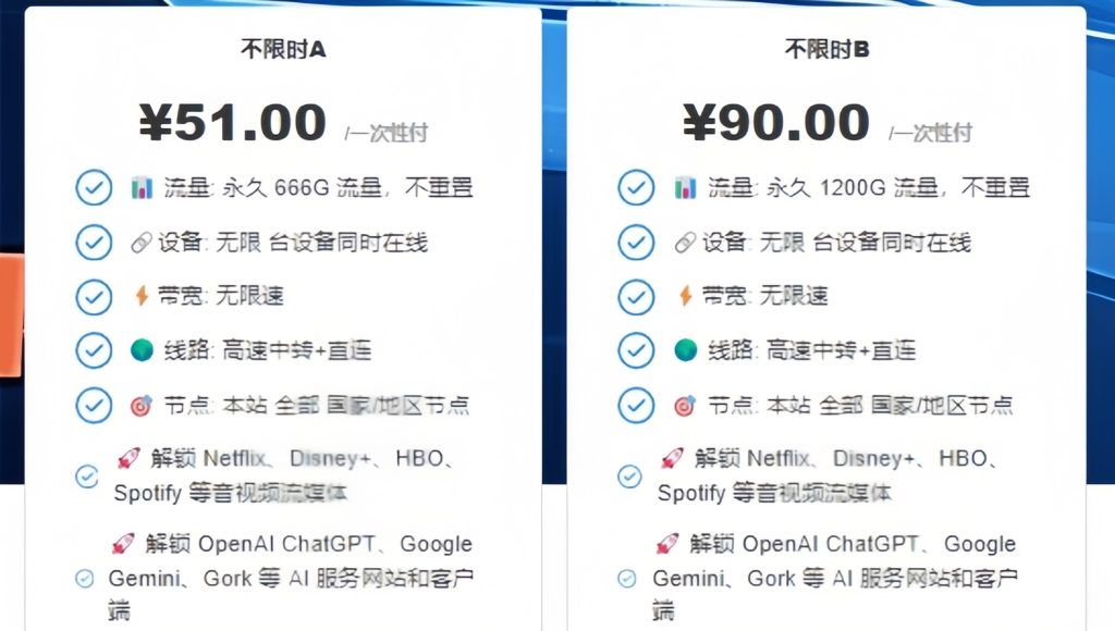 - 高速专线,解锁流媒体及ChatGPT